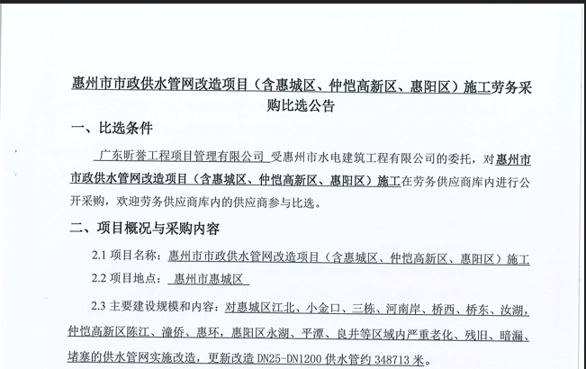 惠州市水電建筑工程有限公司勞務供應商庫擴庫評審結果公示……